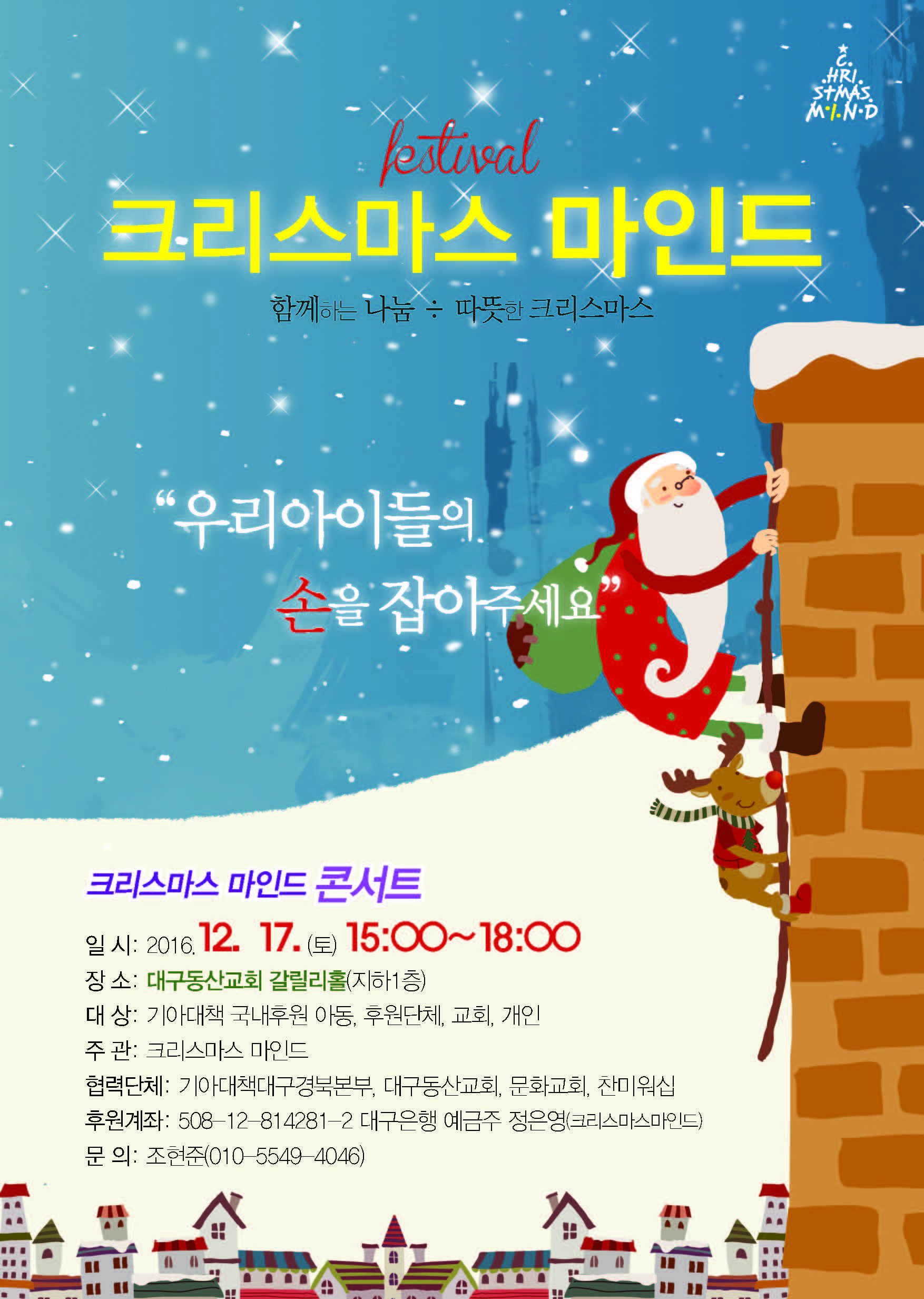 안녕하세요 크리스마스마인드에서 재학생 여러분의 관심을 필요로 합니다.