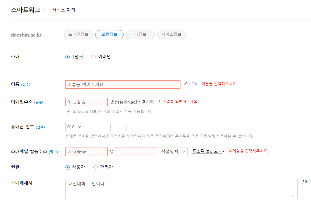 사용할아이디 : @daeshin.ac.kr