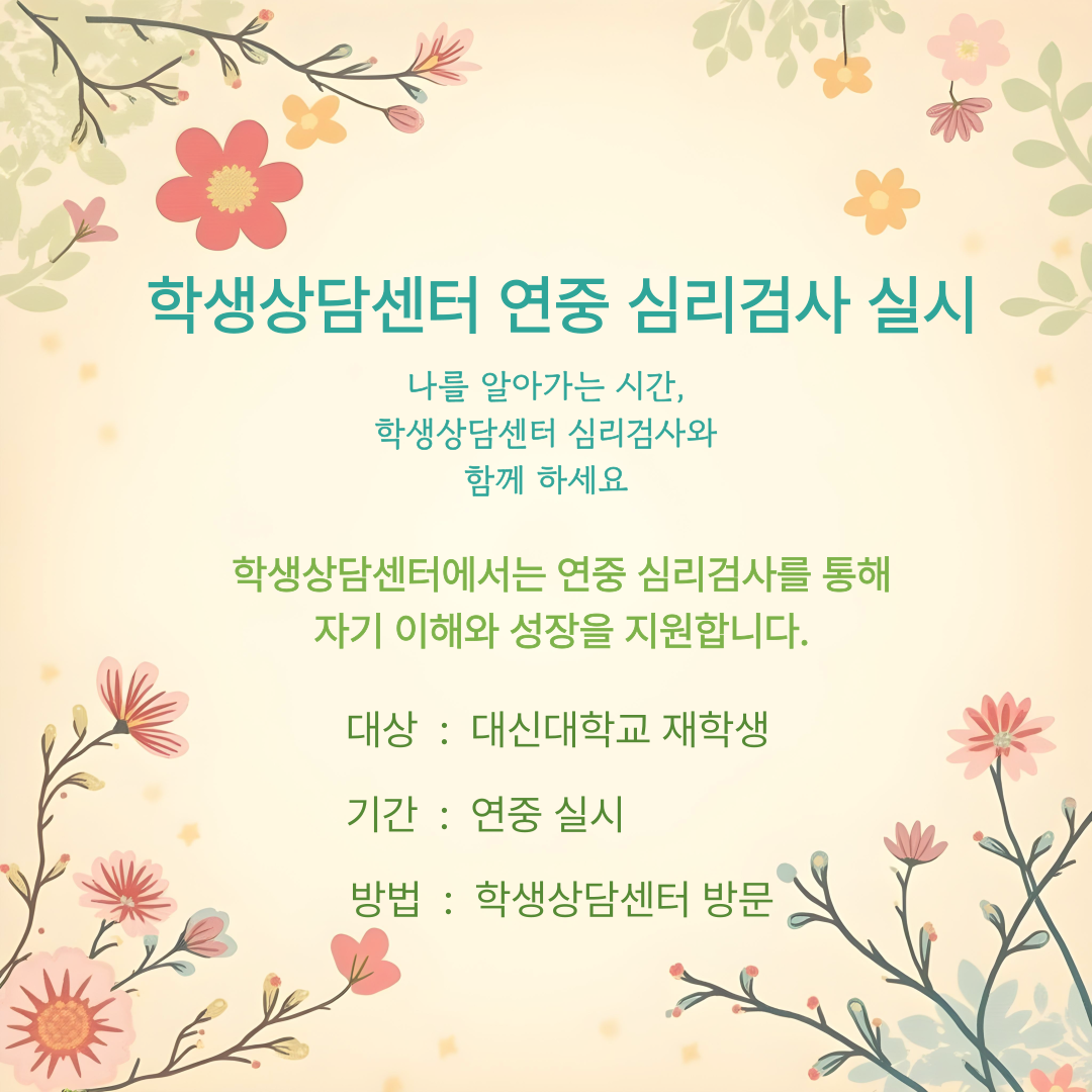 | 학생상담센터 연중 심리검사 실시 합니다. | |||||||||