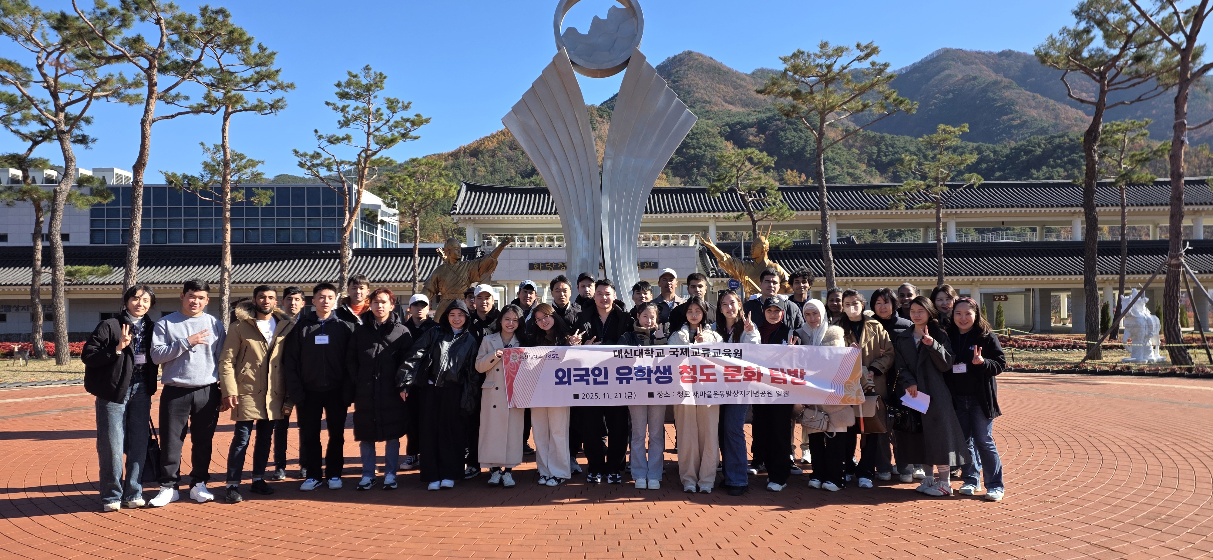 1. 일시 : 2025년 11월 21일 (금) 09:00~17:00 2. 장소 : 청도 새마을운동 발상지기념 공원 일원 3. 대상 : 외국인 유학생 재학생(어학연수과정, 학위과정)