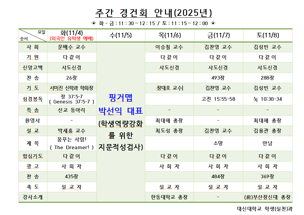 11월 2주차 (11월 4일 - 11월 8일) 경건회 안내