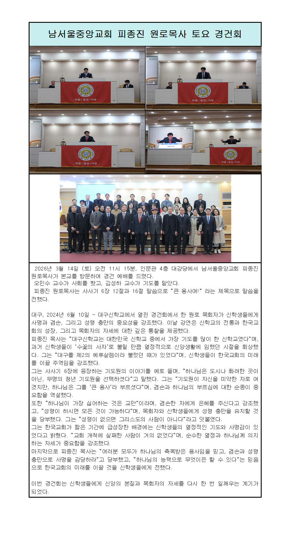 남서울중앙교회 피종진 원로목사 토요 경건회.hwp